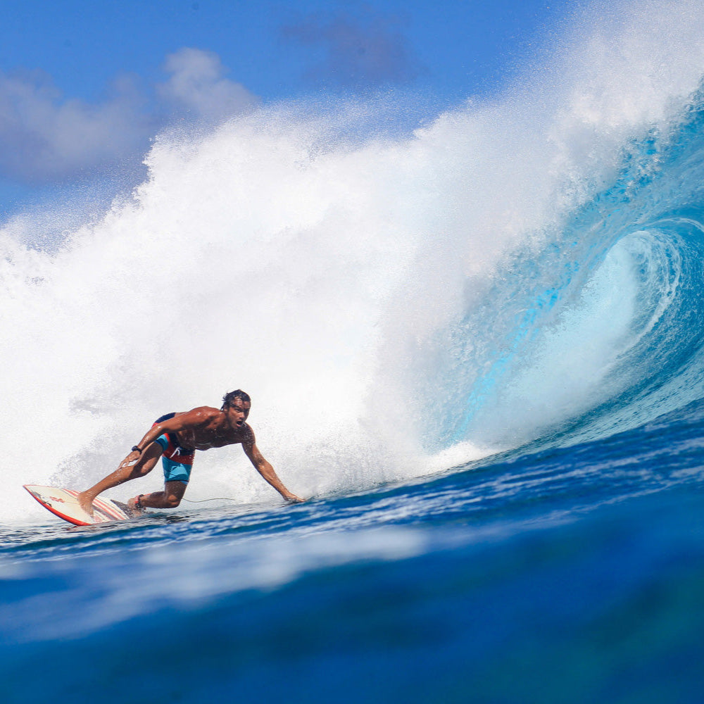 Surfeuse passionnée et véritable ambassadrice de la culture polynésienne, Vaimiti Teiefitu incarne l’élégance et la puissance du surf au féminin. Ancienne Miss Tahiti, elle utilise son image et son influence pour promouvoir l’océan, l’environnement et l’art de vivre polynésien.